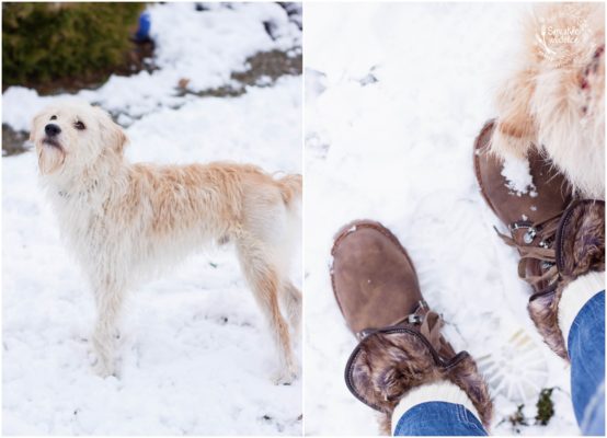 Zimowe torty najokazalej prezentują się na tle zimowych pejzaży. Pogoda jest boska więc połączyłam przyjemne z pożytecznym. Zabrałam Biszkopta do jego kumpla Aleksa. Wariaty biegały przez godzinę po ogrodzie a ja w spokoju (no, powiedzmy, że był spokój) zrobiłam zdjęcia. W każdej chwili mogły staranować statyw z aparatem, prawie strąciły mi torcik z rąk i skakały po mnie jak szalone ale koniec końców udało się okiełznać towarzystwo. Marysia, dziękuję za pomoc. Bez Ciebie zrobienie tej sesji byłoby niemożliwe 🙂 Zapraszam na zimowe ciacho ryżowe, pełne cynamonu i migdałów 😉